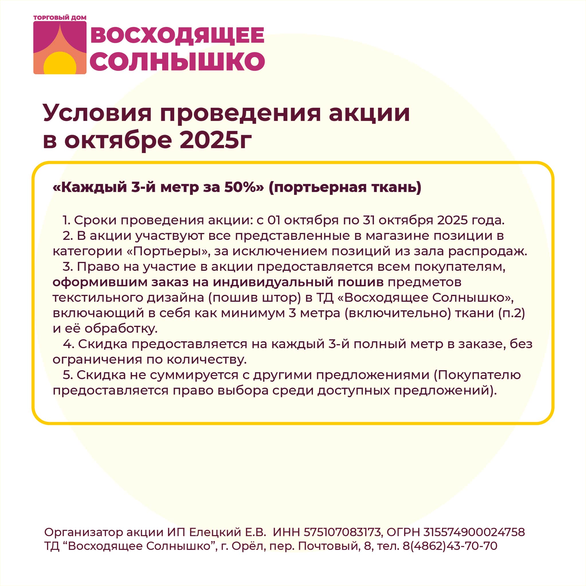 Каждый третий метр портьерной ткани - за полцены в октябре. Ждём Вас!